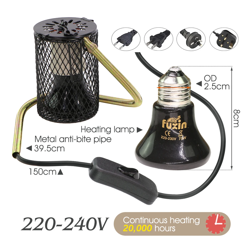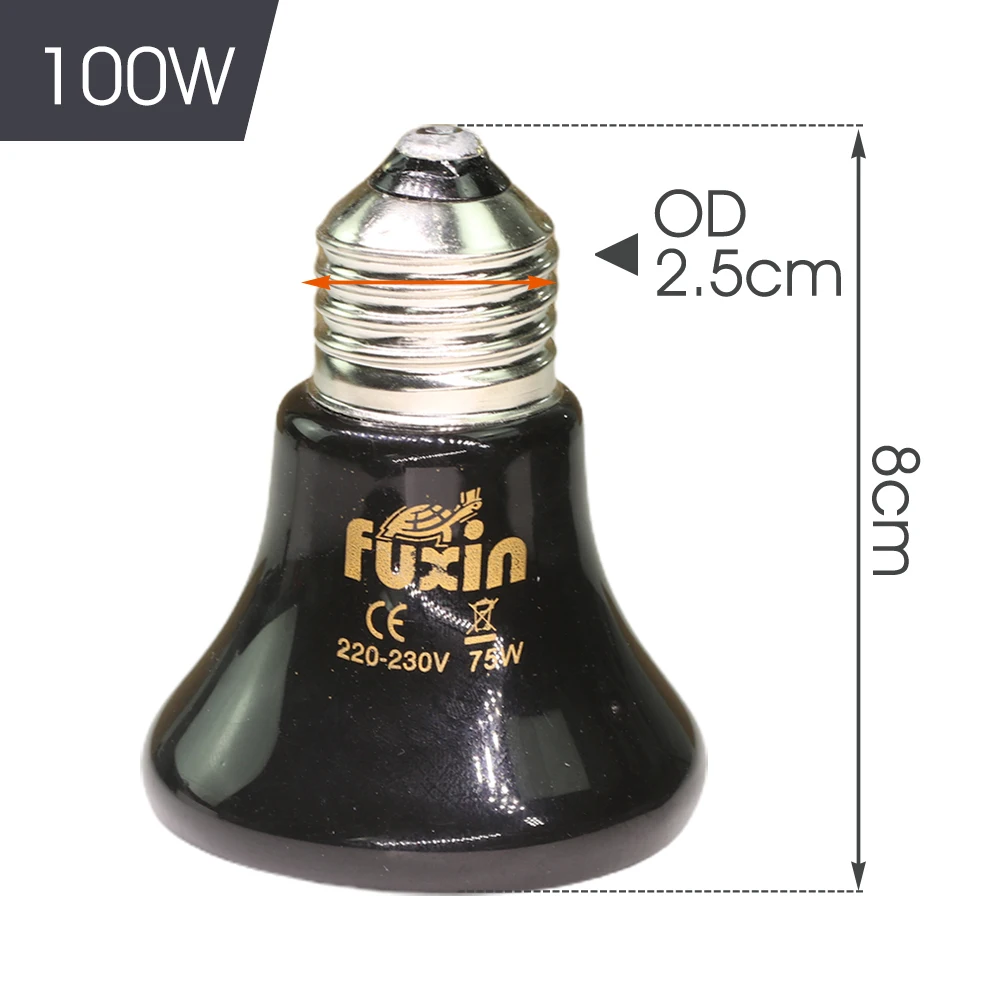 Specifikacije: Napetost: AC 220V; Moč: 25/50/75/100W; Material: keramika, kovina, NiCrAl; Da se izognete opeklinam, počakajte vsaj 1 uro, da se žarnica ohladi po izklopu. Visoko čista keramika zagotavlja odpornost proti razpokam in vodoodpornost.