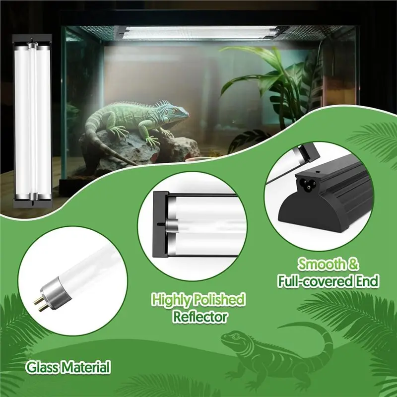 Visoka moč UVB in UVA za zdravo rast: Ta UVB luč za plazilce je opremljena z visoko poliranim, ukrivljenim reflektorjem iz zlitine in zagotavlja visoko močne UVB žarke z 10 % UVB in 30 % UVA, tako kot naravna sončna svetloba. To pomaga vašim plazilcem absorbirati kalcij, sintetizirati vitamin D3 ter ostati močni in zdravi.